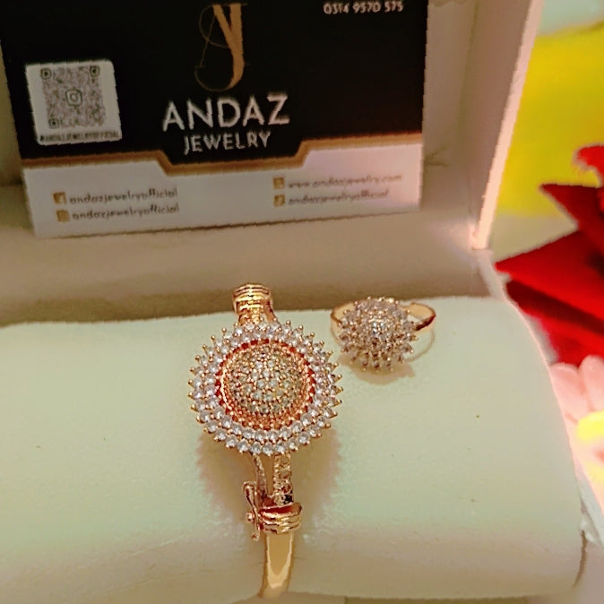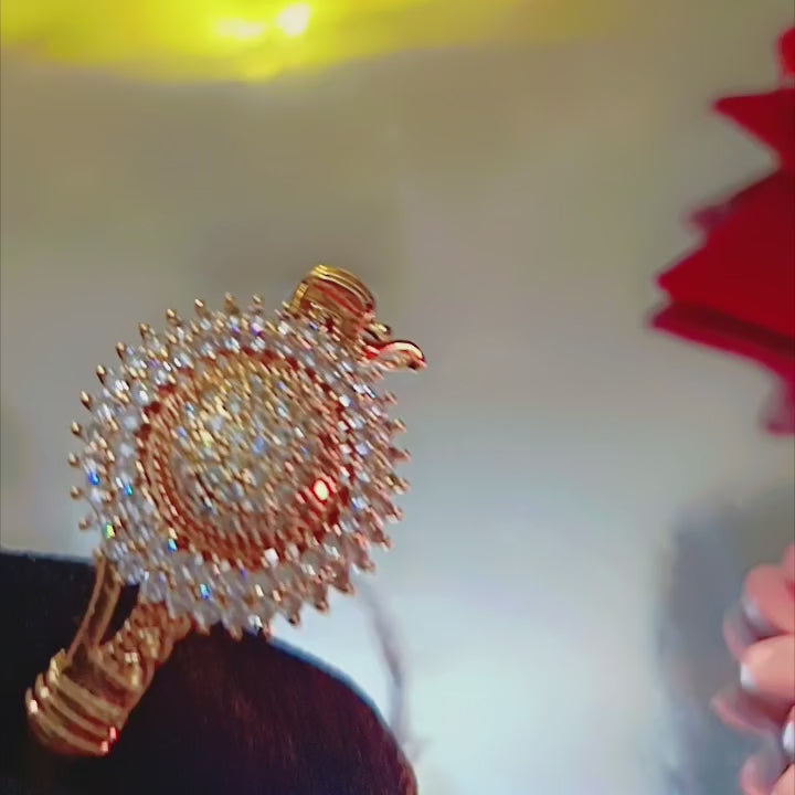 3D cut flower shape rounded style embedded with white and ruby beads with beautiful adjustable ring is available now .