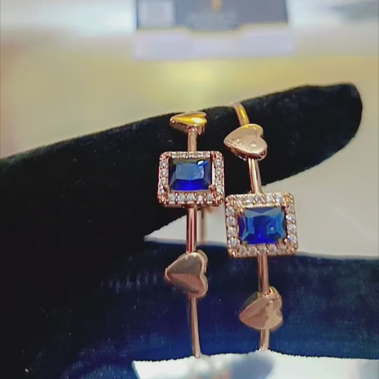 Beautiful sleek design square motif stone in the middle and heart shape rounded pair bangle with gungru is available now